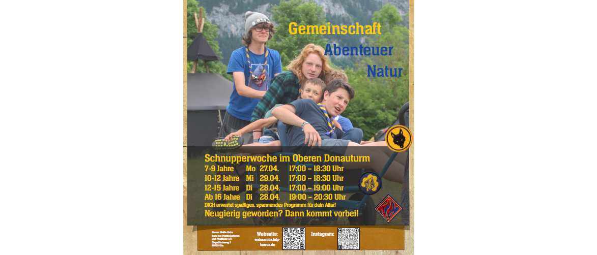 Der Stamm Weiße Rotte bietet für alle Kinder und Jugendlichen ab 6 Jahren wöchentliche Gruppenstunden im Oberen Donauturm in Ulm an.